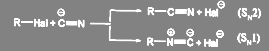Нуклеофильное замещение в ряду галогеналканов может осуществляться как по SN 1, так и по SN 2 механизмам. В первом случае лимитирующей скорость процесса стадией является диссоциация галогеналкана по связи С - Hal с образованием карбкатиона: