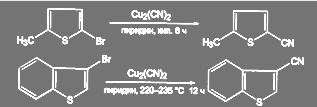 В ряду пятичленных гетероциклов реакции нуклеофильного замещения изучены еще недостаточно. Галогензамещенные фураны и тиофены относительно инертны в реакциях нуклеофильного замещения, хотя их реакционная способность выше, чем у соответствующих галогенарилов. Введение сильных электроноакцепторных заместителей увеличивает подвижность галогена.