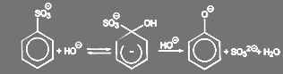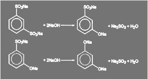 Сульфокислоты бензольного ряда обменивают сульфогруппу на гидроксил в жестких условиях, при температуре 300—340 °С. Таким образом получают фенол и резорцин. При синтезе прозерина щелочное плавление натриевой соли м-диме проводят при 275—290 °С.