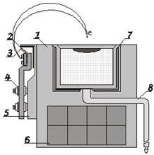 Блок испарителей является одним из основных узлов технологических модулей и предназначен для получения молекулярных пучков. Блок включает в себя два электронно-лучевые испарители (ЭЛИ) Ge и Si, две молекулярных ячейки Кнудсена Sb и B2 O3 и криопанель. ЭЛИ позволяет получать молекулярные потоки веществ, имеющих высокую температуру испарения или требующих испарения из автотиглей из-за большой химической активности. Ячейки Кнудсена создают молекулярный поток за счет нагрева тигля с испаряемым веществом. Конструкция ячеек позволяет получать температуры на тигле испарителя в диапазоне 0-1300 С, с точностью поддержания температуры 0.5 С.