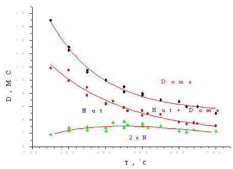 2). Температурное поведение перехода "hut" - "dome" и полной релаксации "dome" островков.