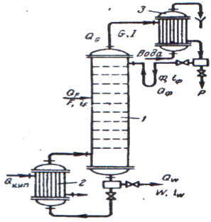 1 – колонна; 2 – кипятильник; 3 – дефлегматор