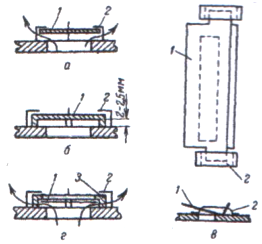 а, б - с круглыми колпачками; в, с пластинчатым клапаном; г - балластная; 1 - клапан; 2 - кронштейн- ограничитель; 3 - балласт.