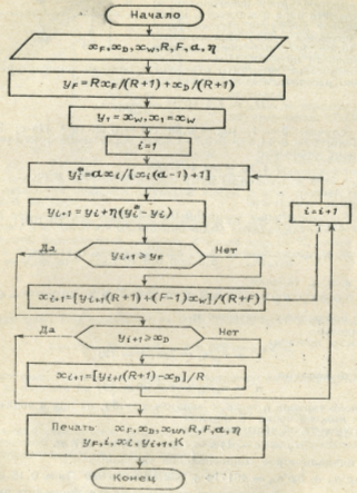 Расчет состоит в последовательном определении в сечении колонны между тарелками составов пара и жидкости (yi , xi ).
