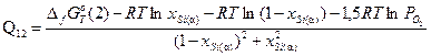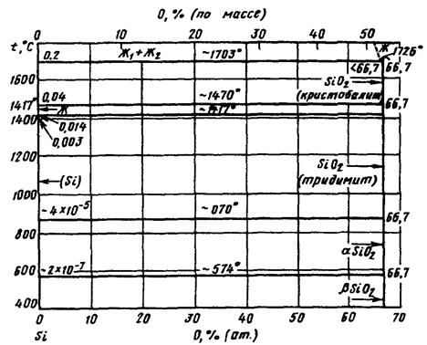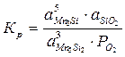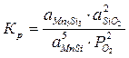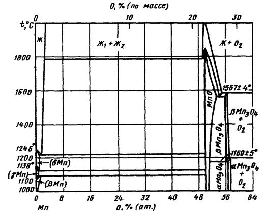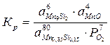 Равновесие MnO с альфа-фазой является моновариантным, поэтому давление кислорода в газовой фазе, равновесной с конденсированной фазой, будет зависеть от активности марганца в альфа-фазе. Однозначно определить его можно, например, для точки, соответствующей предельной растворимости кремния в марганце. В этой точке мольная доля кремния