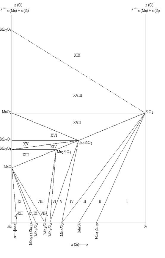 8. Mn3Si –Mn2SiO4 – MnO; (VIII)