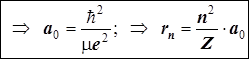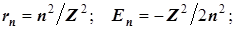 В атомной системе единиц формулы для уровней энергии и “радиусов” движения в водородоподобных атомах (одноэлектронных ионах) выглядят особенно просто: