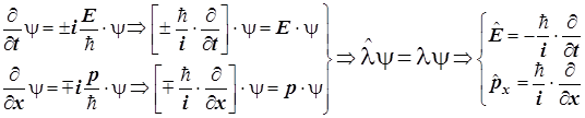 III. Уравнение плоской бегущей волны де Бройля и способ построения операторов импульса и энергии. Операторные уравнения.