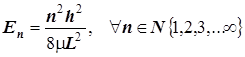 L=nl/2, " nÎN {1, 2, 3,... ¥}; U(x) =0, E=T=p2/2m, " xÎ [0, L]