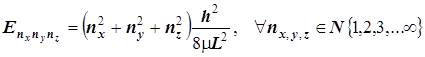 2. Понятие о трёхмерном "потенциальном ящике" как простейшей модели замкнутого пространственного движения частицы. Квантовые числа (nx; ny; nz). Уровни кубического ящика, их вырождение: