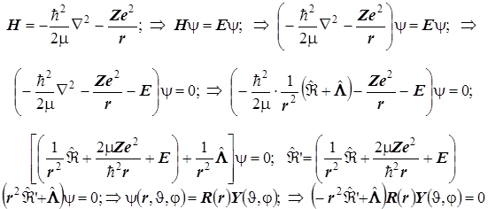 VII. Атом водорода и водородоподобные ионы в квантовой механике.