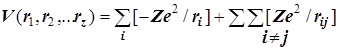 Отдельные слагаемые равны Vi= –Ze2/ri; Vij=+Ze2/rij.