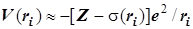 e2s(ri) - заряд экранирования (s(ri) - функция экранирования) ядра