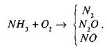Наприклад, реакція окиснення амоніаку ( NH 3 ) може відбуватися до різних стадій окиснення з утворенням різної продукції:
