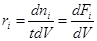 Если ri одинакова по всему объему и V = const (закрытая система), то Dni µV, и дифференцирование по V заменяется делением на V: