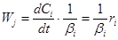 Скорость j-той стадии при V = const есть производная степени глубины реакции c по времени в единице объема