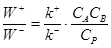 Закон действия масс (Гульдберг–Вааге, Вант-Гофф). Согласно этому закону скорость элементарной стадии в одном направлении пропорциональна произведению концентраций реагентов в степенях, соответствующих стехиометрическим коэффициентам в уравнении стадии
