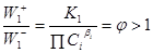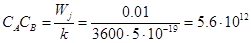 Для того, чтобы скорость стадии (Wj ) была не ниже 0,01 моль×л–1 ×ч–1 (практически приемлемая скорость), произведение концентраций реагентов в реакции типа (6) должно равняться