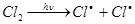 Эта реакция протекает через отдельные элементарные процессы. Прежде всего, за счёт поглощения кванта энергии УФ лучей (или температуры) молекула