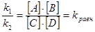 в степенях, равных стехиометрическим коэффициентам, т.е.: