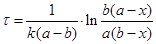 Подставляя полученные значения а ,b и х в уравнение (2), получаем время, необходимое для того, чтобы прореагировало количество эфира, равное х :
