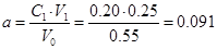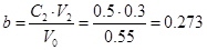 Поскольку общий объём смеси равен V0 =V1 +V2 =0.25+0.30=0.55, то начальные концентрации эфира и щелочи будут, соответственно, равны: