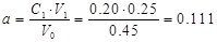 Общий объём реакционной смеси в этом случае равен: V0 =V1 +V3 =0.25+0.20=0.45
