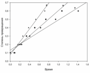 Получим ряд значений степени превращения в соответствующие моменты времени: