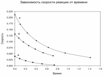 По данным сводных таблиц, построим графики зависимостей скорости реакции от времени.