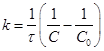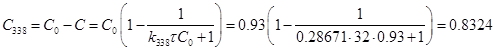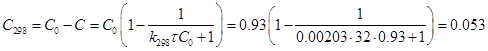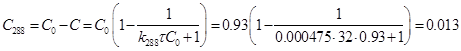 Поскольку исходная концентрация эфира равна: С0 =0,20, то для моментов времени, когда прореагирует 10, 20, 30 … 60% эфира, его концентрация будет составлять: