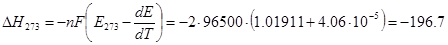 найдем производную зависимости E = f ( T ) по температуре (температурный коэффициент ЭДС гальванического элемента):