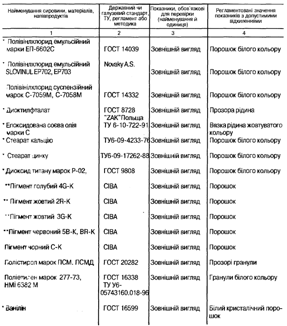 Основна сировина, матеріали і напівпродукти наведені в табл.2