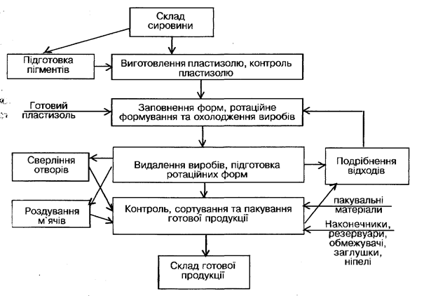 Схема технологічного процесу виробництва балонних виробів з ПВХ - пластизолю