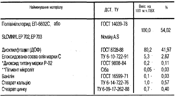 5. Рецептура ПВХ – пластизолю марки Д 17Ин для виробництва спринцівок, м’ячів