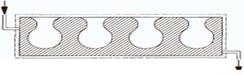 Для нагріву форм в сучасних технологічних установках в основному використовується масло. Нагріваючі і охолоджуючі канали, виконані таким чином, що здатні забезпечити підтримку рівномірної температури. Для виготовлення одногніздних форм з подвійною стінкою в основному використовується листова сталь. Стійки створюють опору для зовнішньої поверхні і внутрішніх стінок. По своїх розмірах і типі кріплення ці стійки такі, що вони без необхідності не збільшують теплоємність форми, одночасно забезпечуючи оптимальне протікання теплоносія (мал. 13.3).