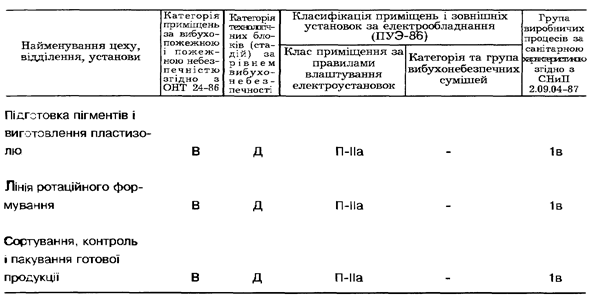 · категорії приміщень, будівель за вибухопожежною та пожежною небезпекою;