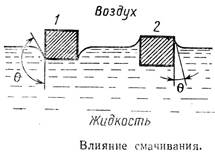 Флотация основана на различной смачиваемости минералов водой. Мерой смачиваемости материалов служит величина краевого угла смачивания, образующегося вдоль линейной границы раздела твёрдое тело - жидкость - воздух (Рис 1.1 ).