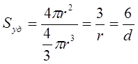 С повышением дисперсности всё большее число атомов вещества находится в поверхностном слое, на границе раздела фаз, по сравнению с их числом внутри объёма частиц дисперсной фазы. Соотношение между поверхностью и объёмом характеризует удельная поверхность: S уд = S / V , которая для частиц сферической формы равна