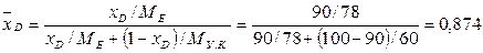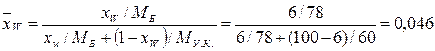 Для дальнейших расчетов выразим концентрации в мольных долях.