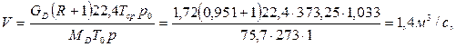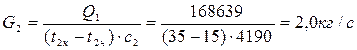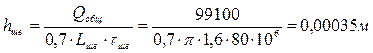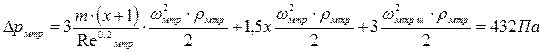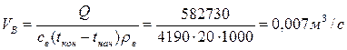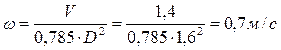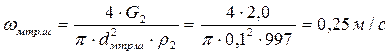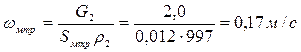 Площадь сечения потока в межтрубном пространстве между перегородками S мтр = 0,025м2 , тогда: