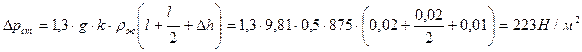 Число рядов труб m = 10, число сегментных перегородок х = 18. Диаметр штуцеров к кожуху d мтр.ш = 0,1 м, скорость потока в штуцерах
