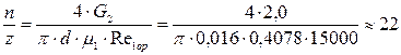 Примем ориентировочное знечение кр. Рейнольдса Re 1ОР = 15000, определим соотношение n / z для труб диаметром d = 20х2мм, 25х2мм: