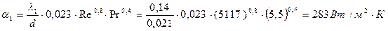 Коэффициент теплоотдачи к воде, пренебрегая поправкой (