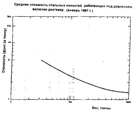 Для определения стоимости 1 тонны емкости С1т.ем воспользуемся графиком, представленном на рисунке 6. Стоимость зависит от массы емкости.