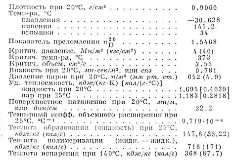 Стирол смешивается с большинством органических растворителей, с низшими спиртами, ацетоном, эфиром, сероуглеродом; в многоатомных спиртах растворим ограниченно. В смеси с воздухом в объемных концентрациях 1,1 – 6,1% образует взрывоопасные смеси. Стирол легко полимеризуется и сополимеризуется с большинством мономеров по радикальному и по ионному механизмам. В промышленности стирол получают несколькими способами: