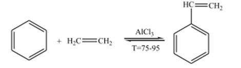 3.Из бензола и этилена жидкофазным методом в присутствии AlCl3 в качестве катализатора.