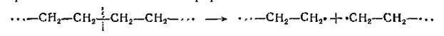 Реакциями деструкции называю реакции, протекающие с разрывом химических связей в главной цепи макромолекулы. В зависимости от типа химической связи (Ковалентной или ионной) возможны три механизма деструкции полимеров: радикальный, ионный и ионно-радикальный. При наличии ковалентной связи между атомами главной цепи разрыв макромолекулы протекает с образованием свободных макрорадикалов.
