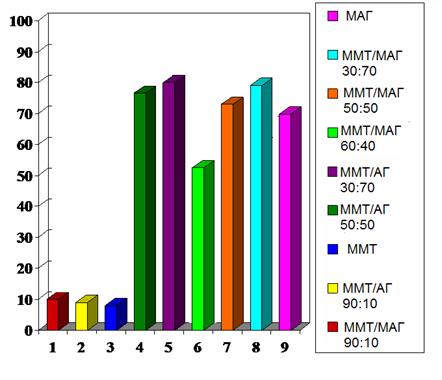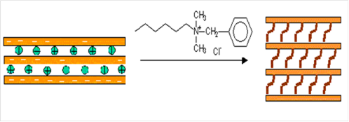 Одним из наиболее эффективных способов получения нанокомпозитов является внедрение в глинистый минерал мономеров с их постинтеркаляционной полимеризацией [5]. В этом случае образуются нанокомпозиты, в которых неорганический и полимерный компоненты связаны сильными ковалентными или ионными химическими связями.