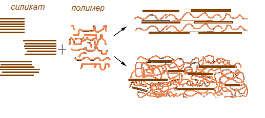 В последние годы проводятся широкие исследования процессов получения композиционных материалов на основе полимеров и природных слоистых силикатов. Этот класс новейших нанокомпозитов обладает синергизмом свойств исходных компонентов. Необычность их архитектурного оформления заключается в том, что органическая фаза может захватывать наночастицы внутрь своеобразной «ловушки» или полимерной сетки.
