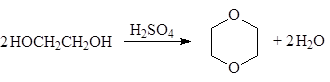 Дегидратация этиленгликоля зависит от условий ее проведения. Так, в присутствии небольших количеств серной кислоты при нагревании происходит межмолекулярная реакция и образуется диоксан: